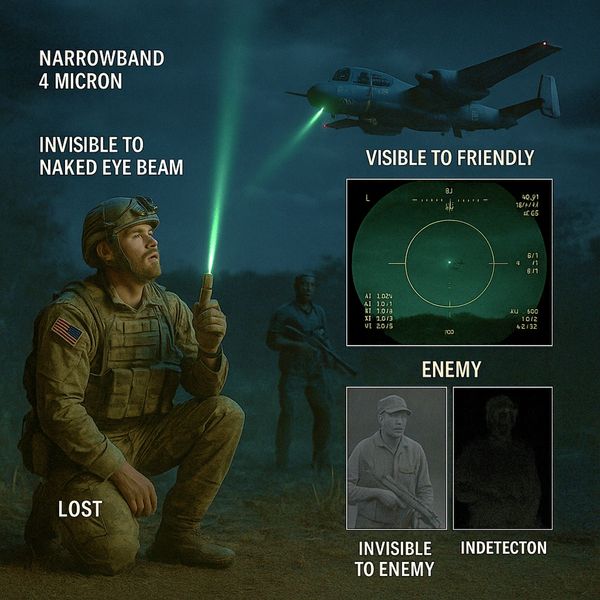 Using an invisible infrared beam, it allows users to alert aircraft and friendly forces without exposing their position — making it an essential tool for search and rescue operations and tactical field missions alike.